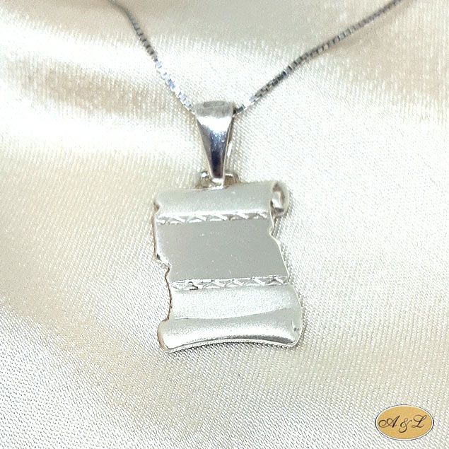 Sonstiges: Mit doppeltem Oxidationsschutz (Rhodium) angewendet. Pergamentfliesengröße 2 cm, verziert mit matten Teilen und gravierten Linien. Möglichkeit der Gravur.