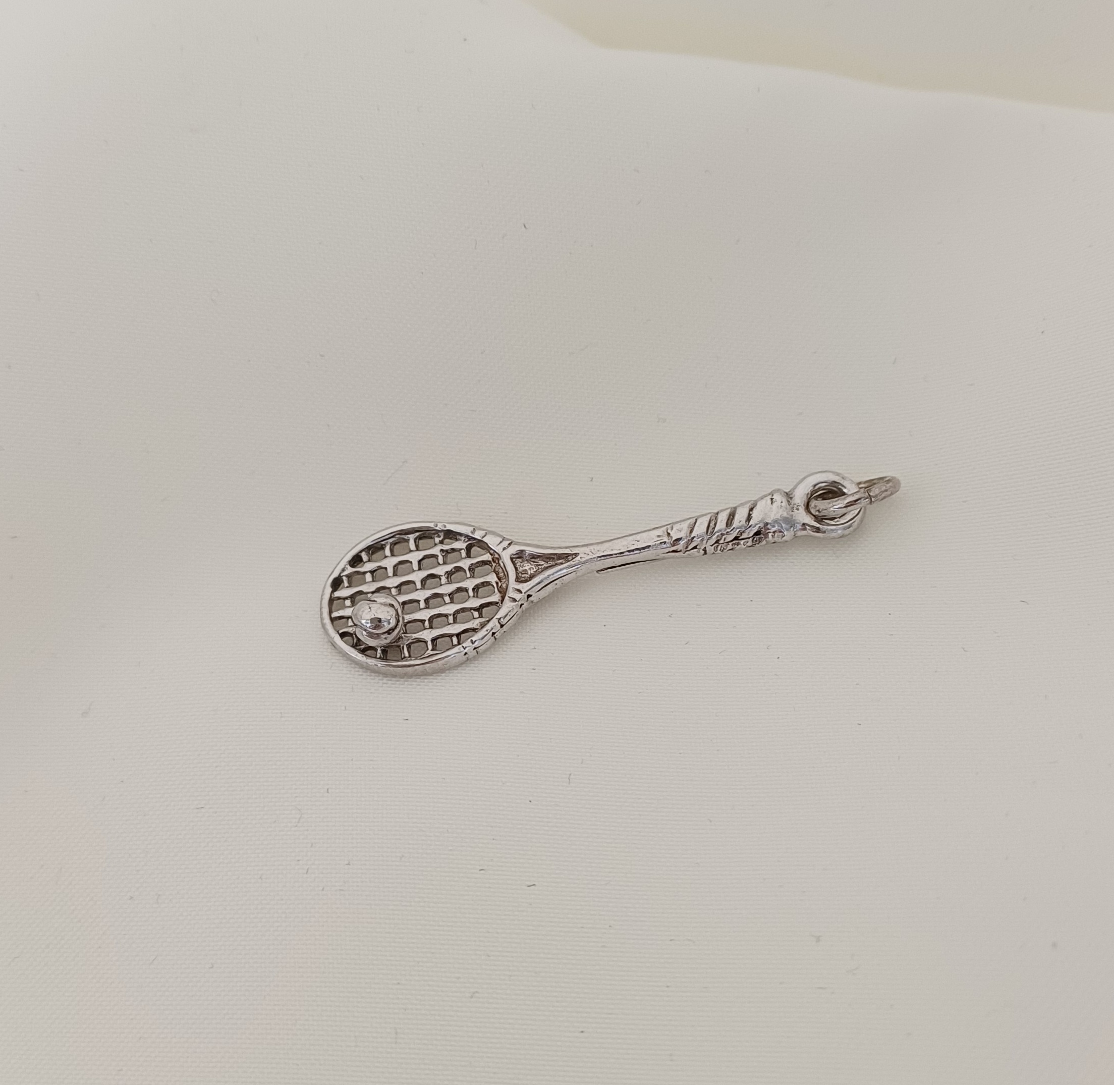 Sonstiges: Anhänger in Form eines Tennisschlägers, 4 cm lang. Angewandter doppelter Oxidationsschutz (Rhodium).