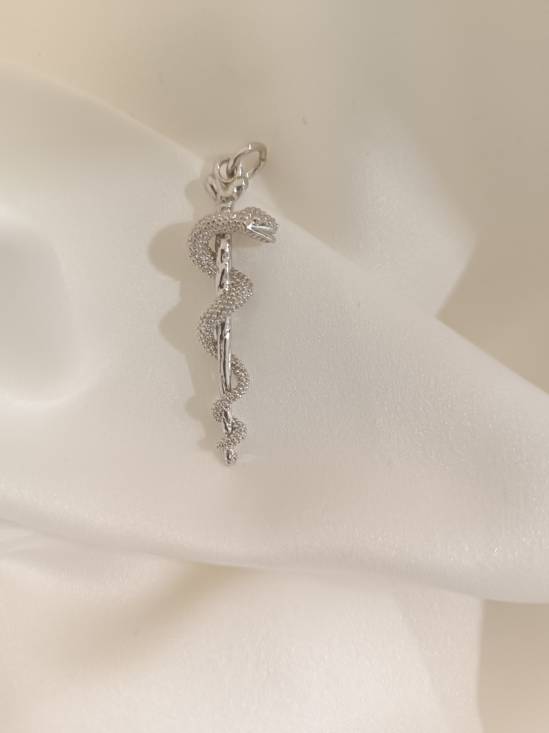 Sonstiges: Anhänger in Form eines pharmazeutischen Symbols, Länge 5 cm. Angewandter doppelter Oxidationsschutz (Rhodium).