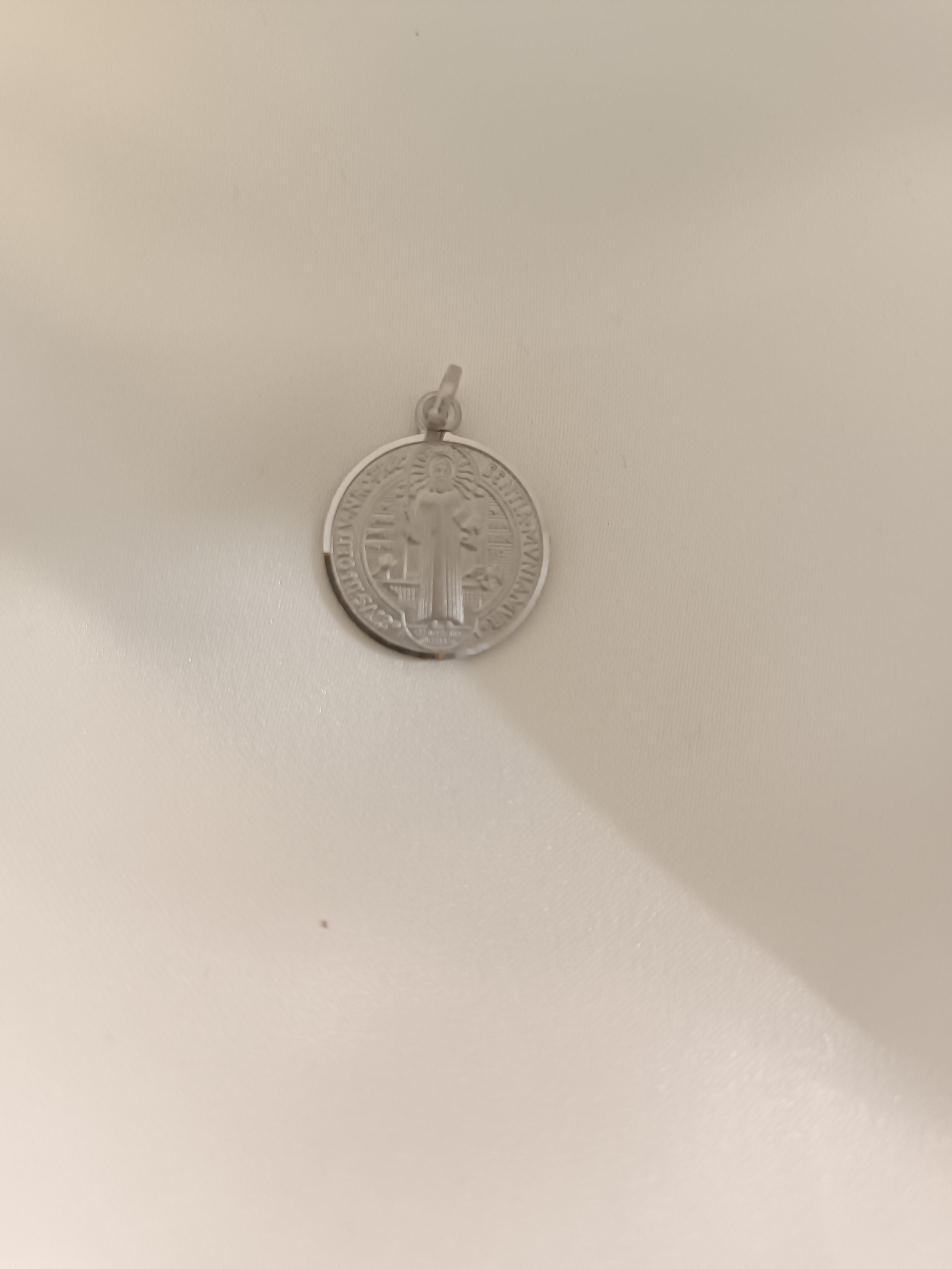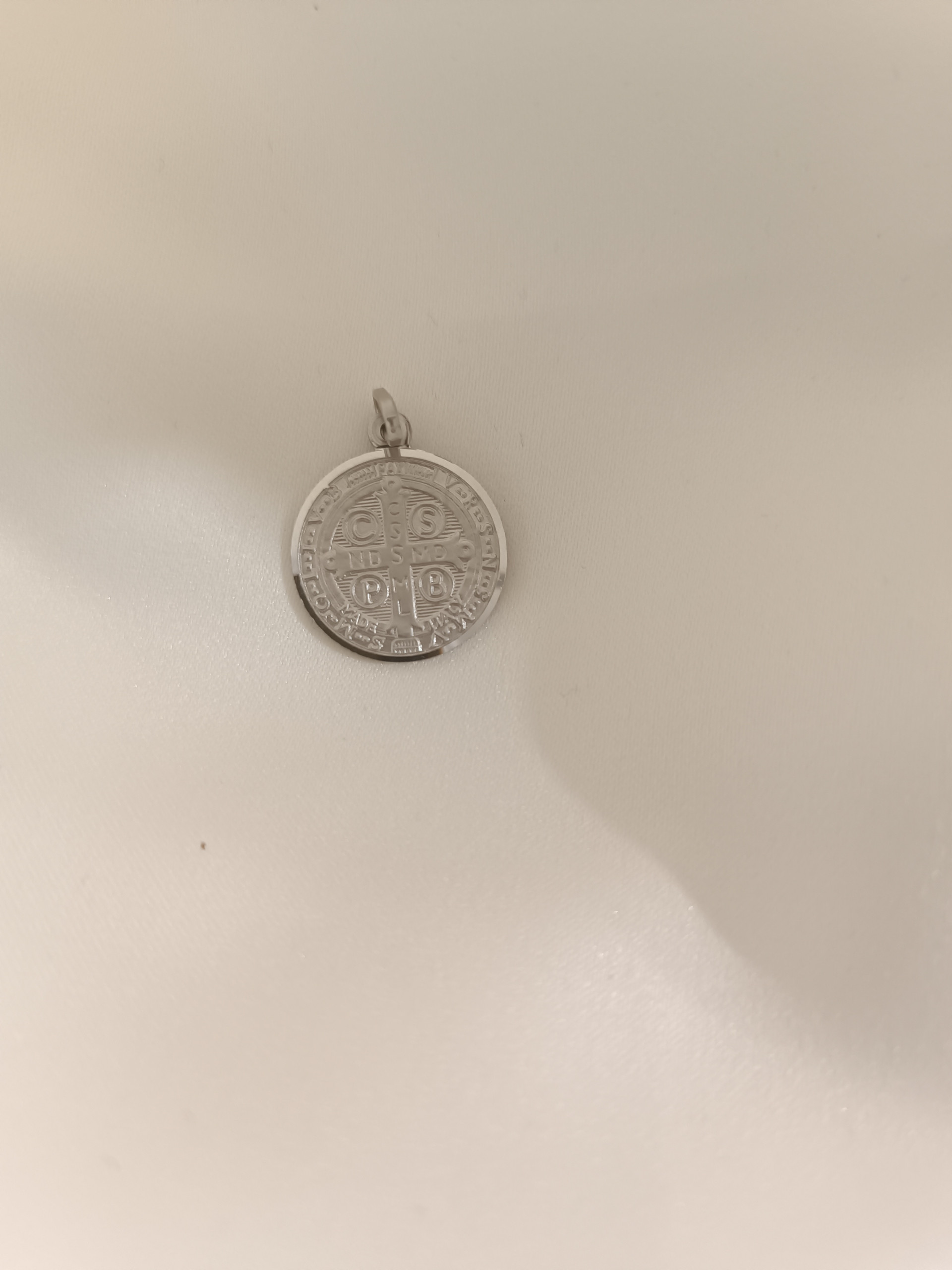 Sonstiges: Anhänger des Heiligen Benedikt, Durchmesser 2,5 cm. Angewandter doppelter Oxidationsschutz (Rhodium).
