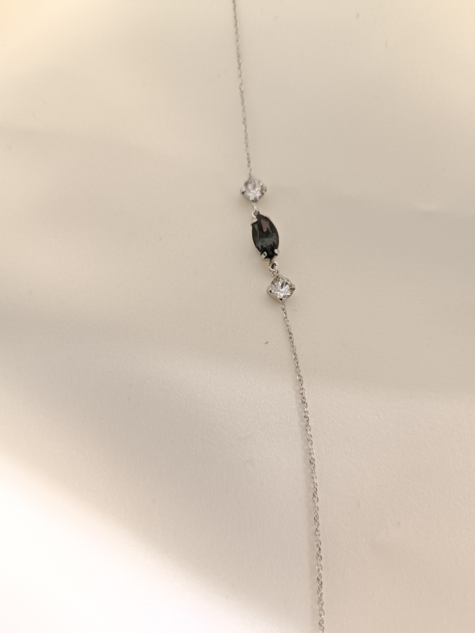 Sonstiges: Mit zwei kleineren, runden Zirkonen in weißer Farbe und einem größeren, ovalen Zirkon in grauer Farbe. . Doppelter Oxidationsschutz (Rhodium aufgetragen).