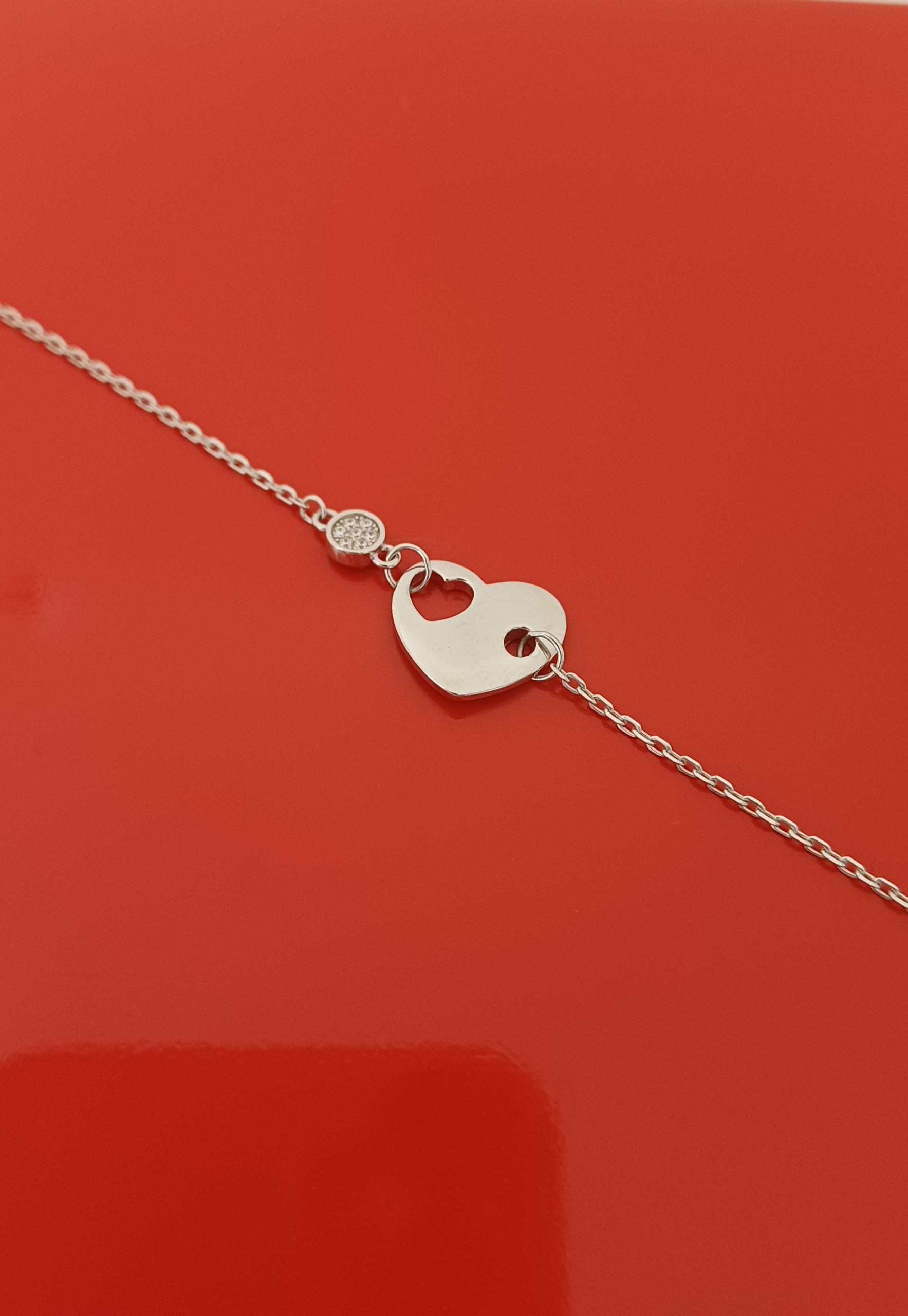 Sonstiges: Mit einem glänzenden Herz (10 mm x 10 mm) und einem einseitig mit Zirkonen besetzten Kreis. Doppelt rhodiniert.