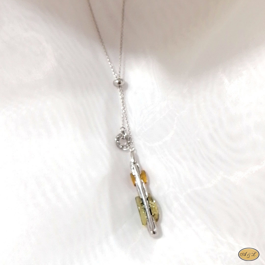 Sonstiges: Angewandter Doppeloxidationsschutz (Rhodium). Der untere Teil der Kette mit bernsteinfarbener Länge 3 cm