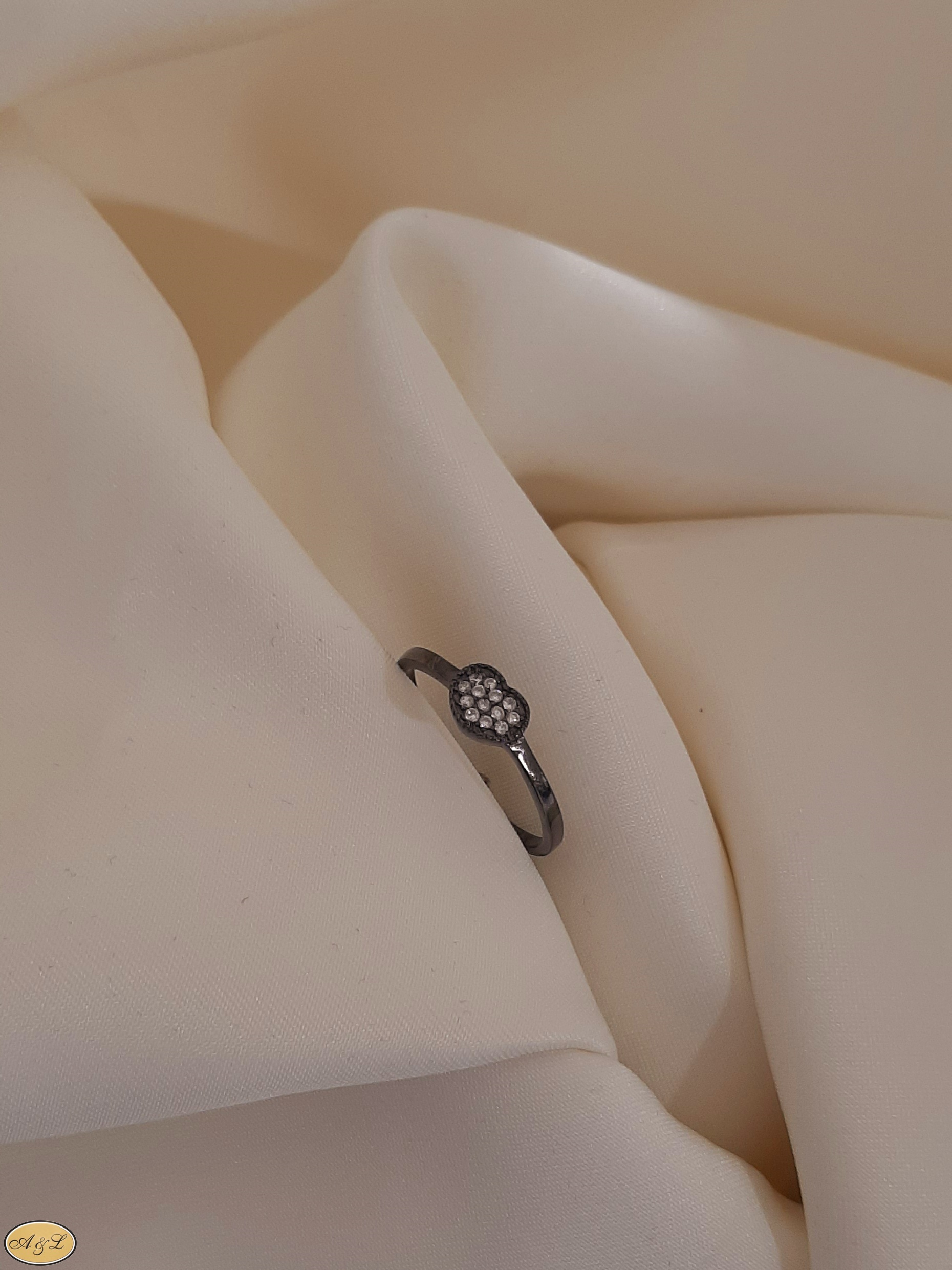 Sonstiges: Schlichter Ring mit Zirkonia-Herz und rhodiniert in Schwarz.