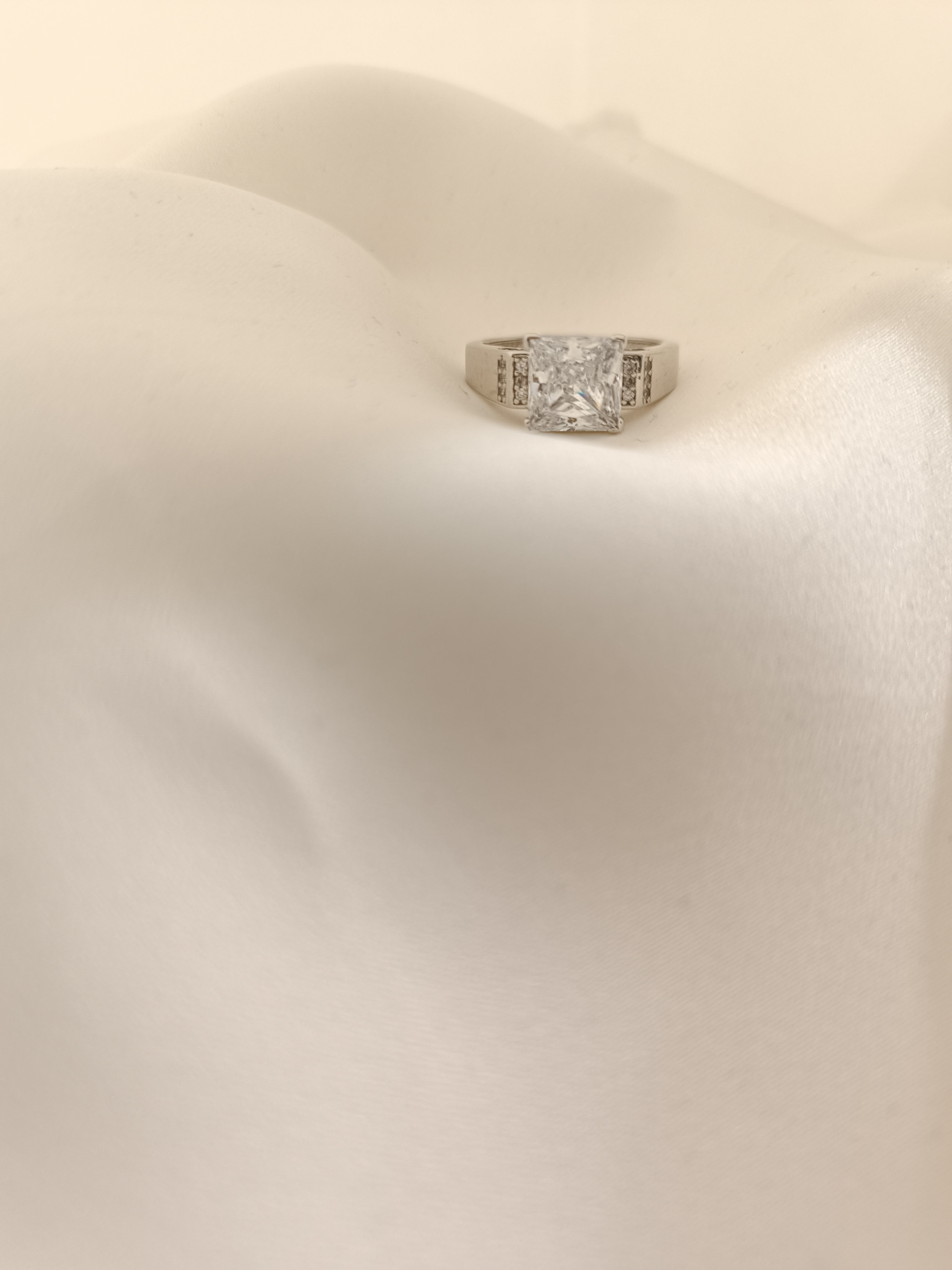 Sonstiges : Ein zentraler kubischer Zirkon mit den Maßen 8 mm x 8 mm und zwei vertikale Reihen kleinerer Zirkone auf jeder Seite.