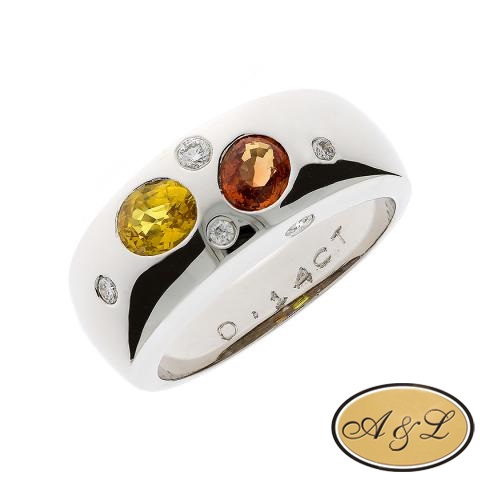 Dijamant (Round brilliant) 2 x 0,015 ct , Dijamant (Round brilliant) 1 x 0,020 ct , Dijamant (Round brilliant) 3 x 0,030 ct I Fancy Sapphir 2 x 0,37 ct