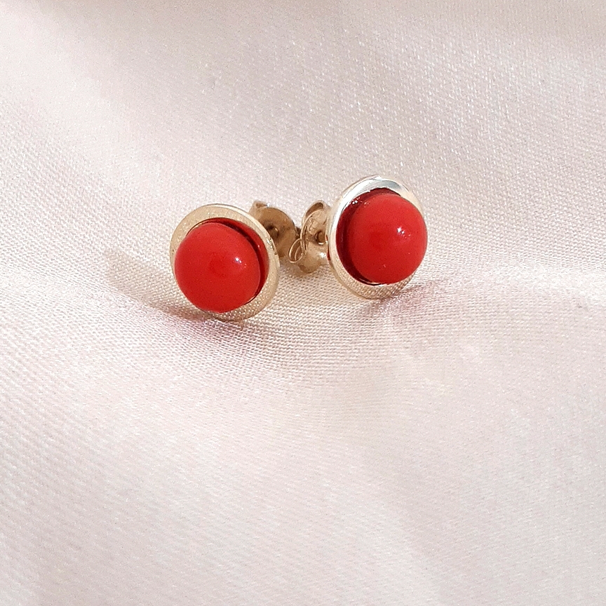 Ostalo: Predivne, ručno izrađene okrugle naušnice sa koraljima, na štift.
