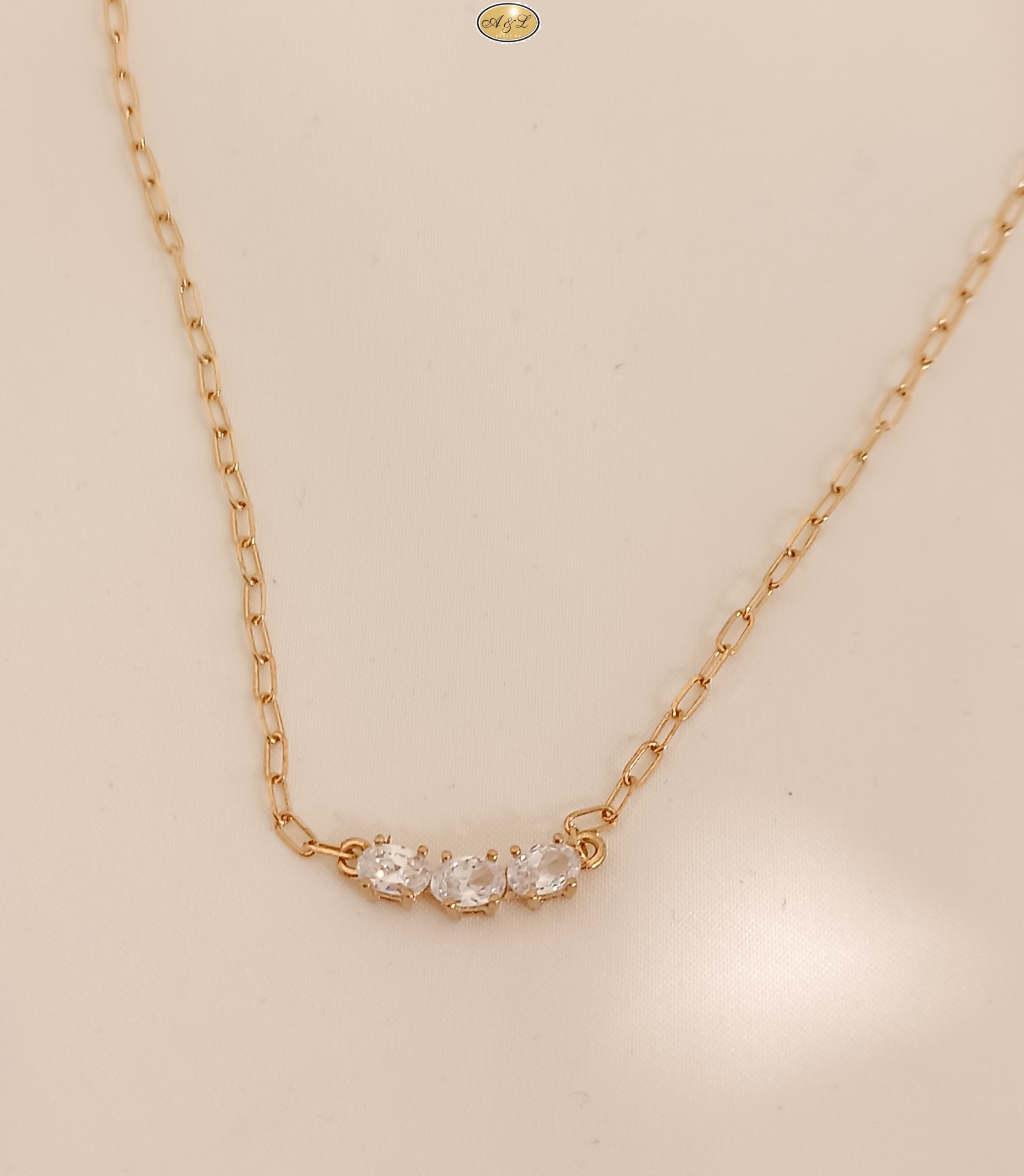 Ostalo :Aplicirana dvostruka zaštita od oksidacije ( rodij). Elegantna ogrlica sa 3 komada cirkona,5,5 mm x 4,5 mm, jedan do drugoga.