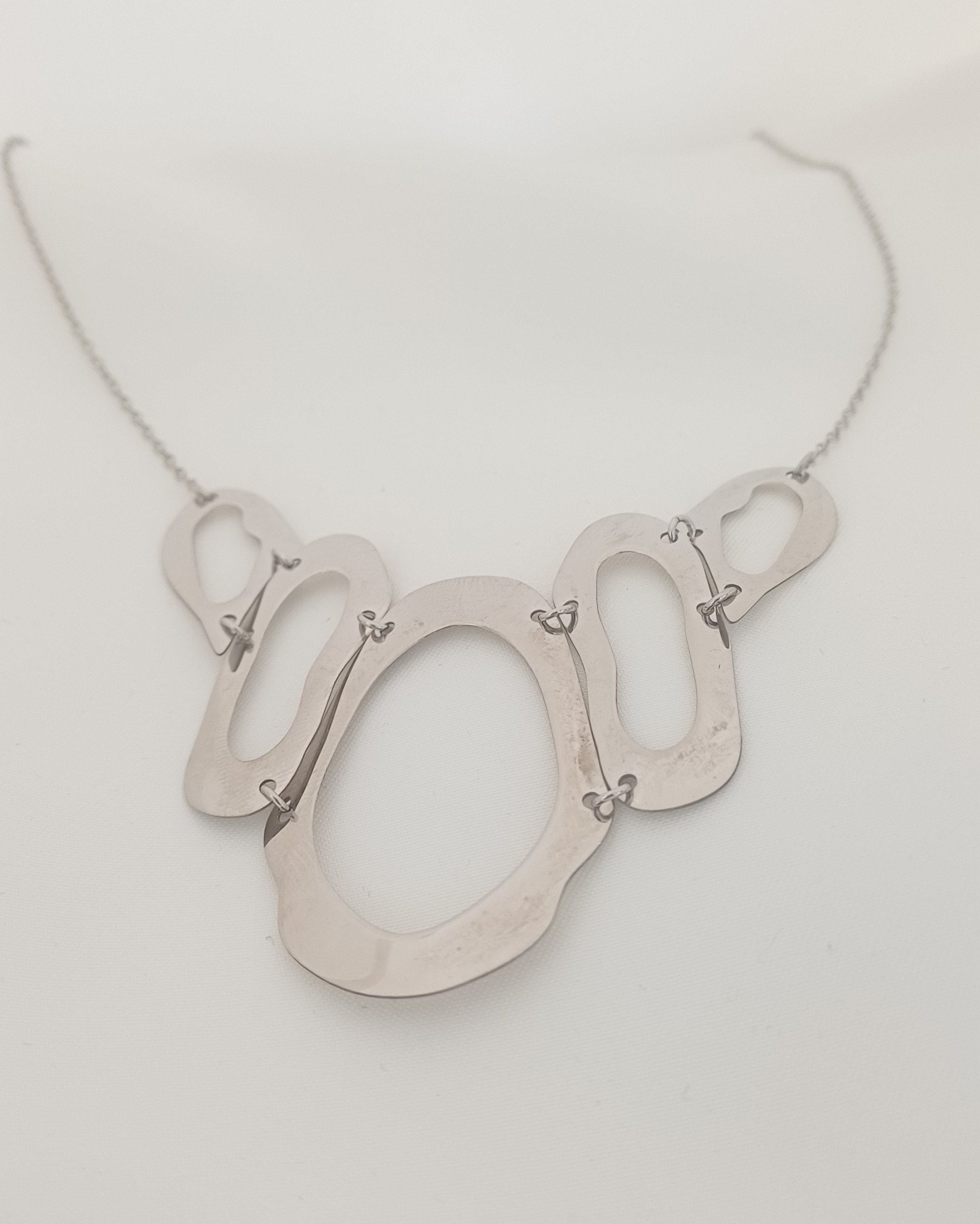 Ostalo: Aplicirana dvostruka zaštita od oksidacije.(rodij). Neobična ogrlica sa neobičnim krugovima.