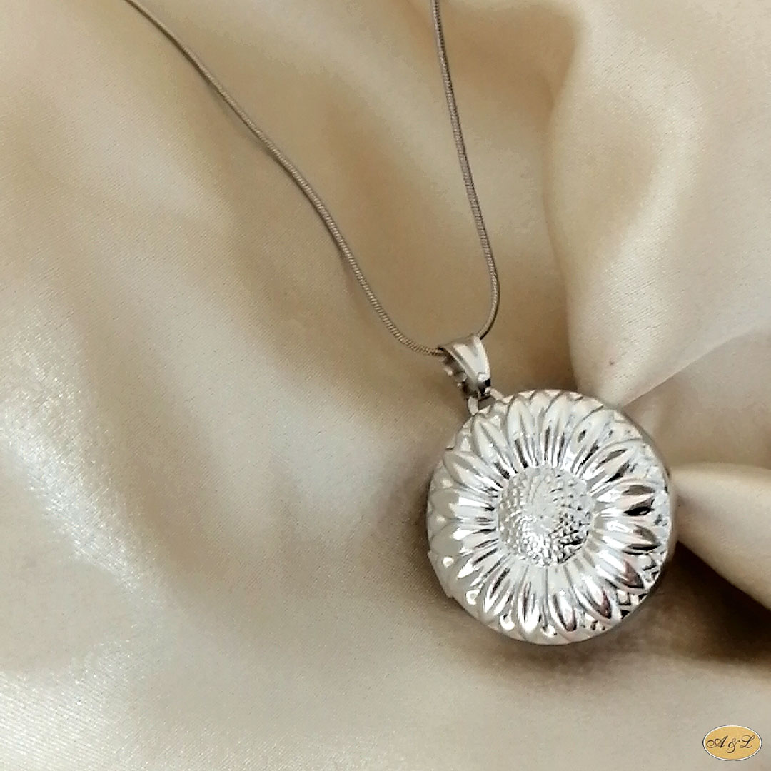 Ostalo: Aplicirano dvostrukom zaštitom od oksidacije (rodij).                                                      Medaljon okruglog oblika, visokog sjaja, ukrašen motivom cvijeta sa mogućnošću umetanja slika,
