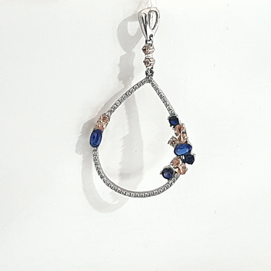 Ostalo: Aplicirano dvostrukom zaštitom od oksidacije (rodij). Ovalnog oblika, po rubovima ukrašen bijelim, žutim i plavim cirkonima različitih oblika.