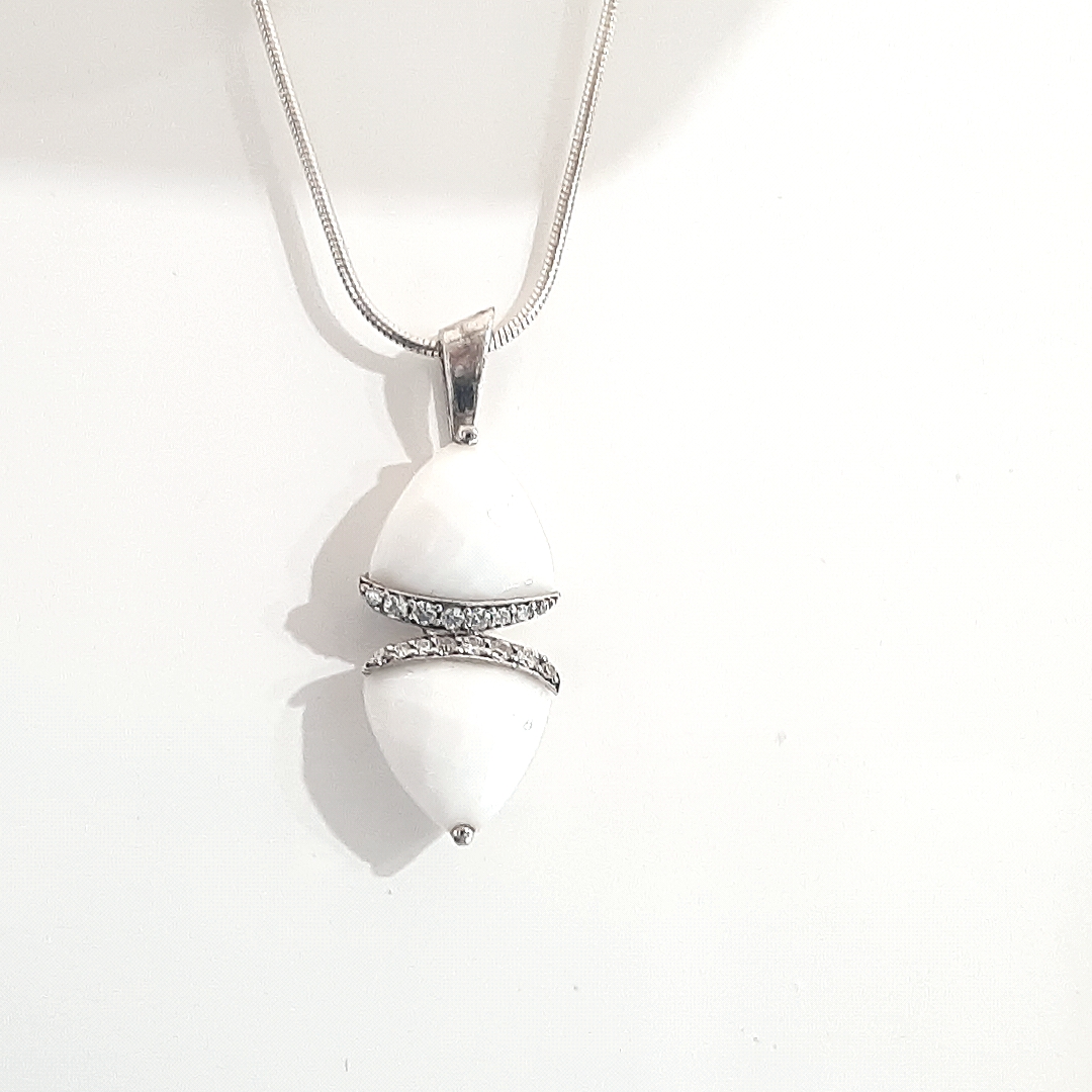 Ostalo: Aplicirana dvostruka zaštita od oksidacije (rodij). Dva bijela poludraga kamena, spojena u sredini i ukrašeni sa cirkonima. Duljine 4 cm.