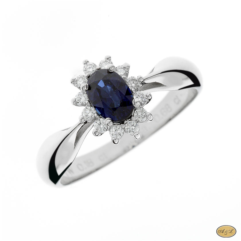 Dijamant (Round brilliant) 12 x 0,015 ct i Safir 1 x 0,680 ct