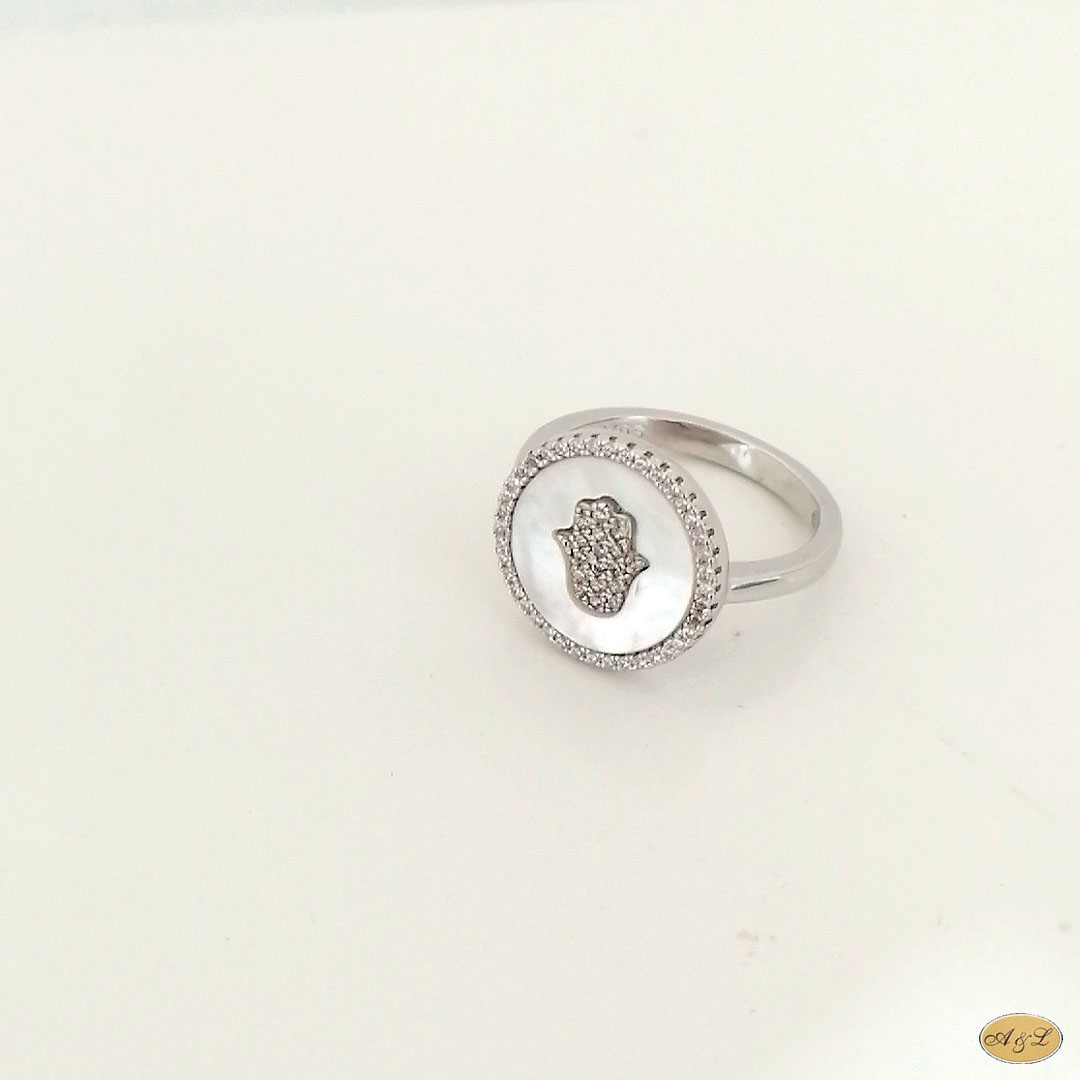 Sonstiges: Mit Zirkonen und Perlmutt verziert, verziert mit einem Zirkonmotiv. Angewandter Doppeloxidationsschutz (Rhodium).